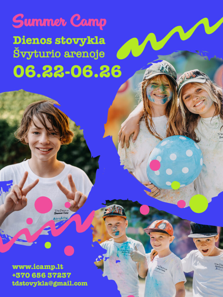 Summer Camp DIENINĖ STOVYKLA – profesionaliai suplanuota, aukštos kokybės vasaros savaitė vaikams, kuriems svarbus judesys, kūryba ir pasitikėjimas savimi. Dirbame ne masiniu principu, o kokybiškai – su struktūra, aiškia programa ir individualiu dėmesiu kiekvienam dalyviui. Kviečiame visus 6-12 m. vaikus!